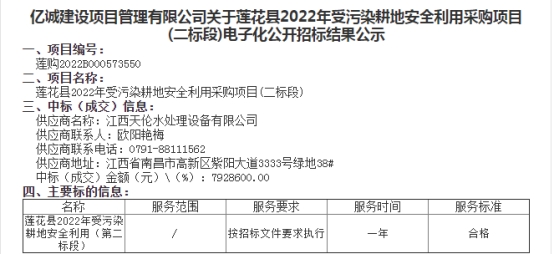 熱烈祝賀我公司2022年5月17日喜中《江西省蓮花縣2022年受污染耕地安全利用采購(二標(biāo)段)項(xiàng)目》。